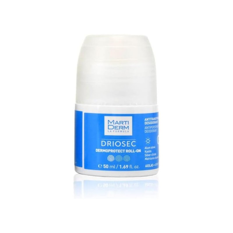 Martiderm Driosec Dermoprotect Roll-On es un desodorante y antitranspirante de alta tolerancia diseñado para pieles sensibles que necesitan controlar la sudoración y el mal olor sin sufrir irritaciones. A diferencia de la versión “Intensive”, esta fórmula está equilibrada para el uso diario en pieles normales a sensibles. Contiene Piedra de Alumbre, un mineral natural con propiedades astringentes y antimicrobianas, y Caolín, una arcilla que absorbe la humedad y el sudor. Además, incorpora un complejo antimicrobiano que neutraliza las bacterias causantes del mal olor. No contiene sales de aluminio agresivas (clorhidrato), alcohol ni parabenos. Ofrece protección eficaz 24h sin manchar la ropa ni dejar residuos blancos.