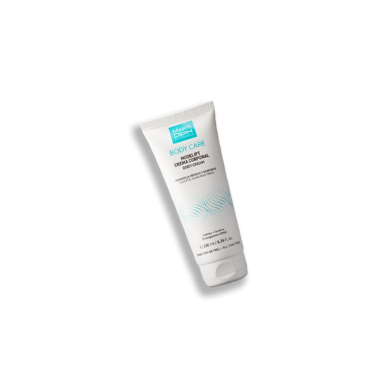 Martiderm Modelift es una crema corporal remodelante y reductora específica para zonas con flacidez y acumulación de grasa, como brazos (“alas de murciélago”), muslos, abdomen y glúteos. Su fórmula sinérgica combina activos tensores y lipolíticos que mejoran el tono muscular y la firmeza de la piel. Contiene Proteoglicanos y DMAE, que actúan reafirmando el tejido y mejorando la elasticidad, junto con extracto de Kigelia Africana y Alaria Esculenta que ayudan a drenar y definir la silueta. Además, incorpora Cafeína y Carnitina para potenciar la quema de grasas localizadas. Su textura es fundente y permite el masaje, facilitando la penetración de los activos. Es ideal para recuperar la firmeza tras pérdidas de peso, embarazo o por el paso del tiempo, dejando la piel más tersa y tonificada.