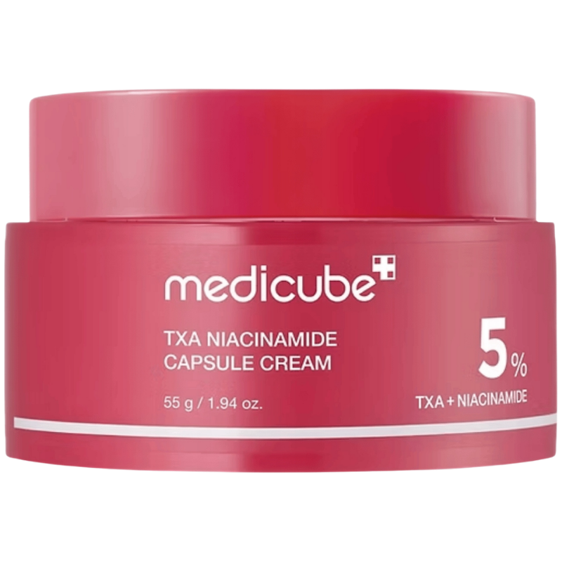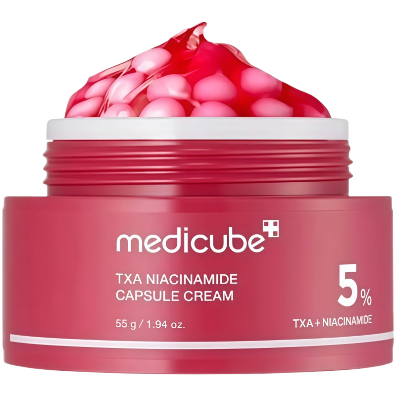 Borra las manchas y unifica tu rostro con Medicube Txa Niacinamide Capsule Cream. Crema despigmentante coreana con cápsulas activas de ácido tranexámico.
